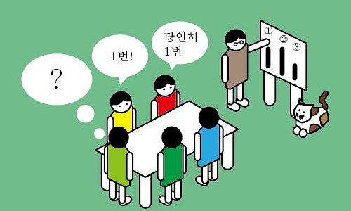 솔로몬 애시의 집단동조 실험에 관하여 알아보도록 하겠습니다. 사람은 자신이 속한 집단에서 인정받고 싶어 하고 집단이 제공하는 가치가 있는 정보를 얻기 위해서 집단의 기준대로 행동하는 경향이 있습니다. 특히 자신에게 능력이 부족하거나 불확실한 상황에 부닥쳤을 때는 더욱 집단의 결정을 따르려는 심리 욕구가 생깁니다. 집단의 위상이나 매력이 너무 커서 자신의 의견은 힘을 갖지 못한다고 느낄 때도 이러한 유형이 될 수 있습니다. 이러한 내용을 바탕으로 1951년 프린스턴 대학교의 솔로몬 애시 교수는 사람들이 집단의 의견이나 압력에 얼마나 동조하는지를 알아보기 위해 간단한 심리실험을 실시했었습니다. 한 실험참가자가 실험 시간에 맞춰 실험실을 방문했고, 그곳에는 이미 다섯 사람이 원탁에 둘러앉아 있었습니다. 이때 이미 앉아 있는 사람들은 이 심리실험의 공모자들이었고, 참가자들에게는 3개의 비교 선분 중에서 제시된 선분과 길이가 같은 선분은 어느 것인가를 묻는 질문이 주어졌습니다. 이때 종이에 그려진 선분과 3개의 비교 선분을 보면 2번째 선분이 정답일 때, 다른 첫 번째 실험참가자가 1번을 정답으로 내놓았습니다. 너무나 틀린 답변에 실험참가자는 어리둥절하기 마련입니다. 하지만 이후 두 번째 실험참가자도 1번을 정답이라고 내놓았고, 세 번째 실험참가자도 1번을 정답이라고 내놓았으며, 다른 실험참가자도 모두 1번이라고 정답을 내놓았습니다. 이제 답을 해야 하는 본 실험참가자는 눈을 의심하기 시작합니다. 자기 눈에 보이는 너무나도 명백한 정답과 다른 사람들이 만장일치로 내놓은 반응 사이에서 괴리감을 느끼며 상당한 긴장감을 경험합니다. 그러다가 점차 자신의 답에 대한 확신이 떨어집니다. 답을 하기 전 그는 주춤거리다가 이단자가 되는 불편함을 감내할지 생각해 보게 됩니다. 마침내 그는 다른 사람들의 틀린 답에 동조합니다. 이 실험에서 만약 모든 사람이 소신 있게 답했다면 실험참가자가 실수할 가능성은 1퍼센트도 되지 않습니다. 그러나 다수의 사람이 한꺼번에 엉터리인 답변을 내놓는다면 지적 수준이 정상적인 사람도 3분의 1 이상은 이 실험참가자처럼 어리석은 집단의 뜻에 동조하고 집단을 따라서 행동합니다. 이 실험을 바탕으로 검은색도 흰색이라고 말하게 하는 힘이 바로 집단동조의 힘이라고 보시면 됩니다. 이러한 집단동조 실험을 바탕으로 직장생활에서도 본인보다 높은 상사 혹은 본인이 믿고 있는 직원이 판단했을 때 이 잘못된 판단이어도 다들 생각이 있을 거라며 따라가려는 경향이 있습니다. 이에 따라 조직이 무너지고 와해할 수 있는 트리거가 형성됩니다. 작은 바람이 나비효과가 되어 태풍이 되듯이 이러한 문제를 잘 파악할 수 있고 대답을 할 수 있으며, 이단자가 되는 것에 대해서 두려움이 없는 현실주의자가 조직 내에서 반드시 필요합니다. 지금까지 솔로몬 애시의 집단동조 실험에 관하여 알아봤습니다.